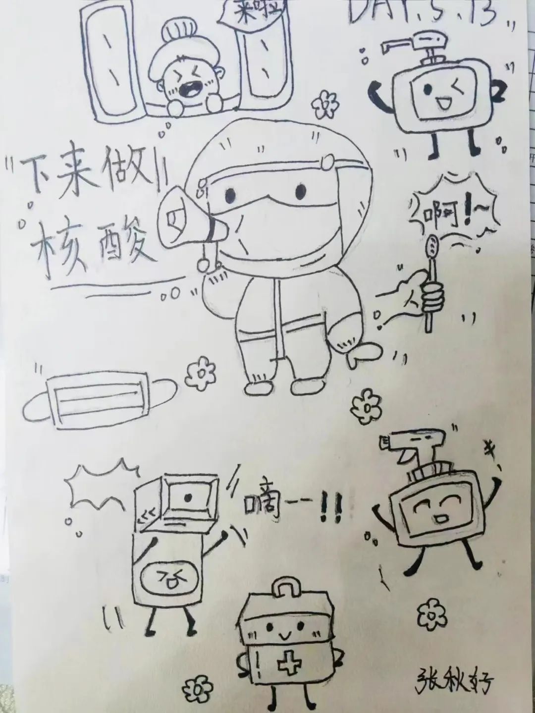 宝山这里的社区小先生以画抗“疫”,致敬逆行者