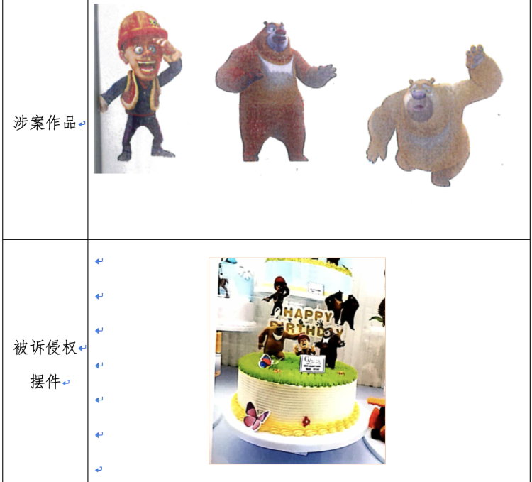 一审法院经审理后认为,创远公司未经许可,擅自在其展销的蛋糕模型上使用“光头强”“熊大”“熊二”卡通形象饰品摆件,侵犯了华强方特公司就涉案美术作品享有的著作权,遂判决创远公司停止侵权,赔偿经济损失3万元及合理开支4千元。