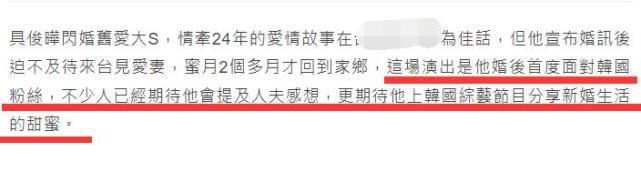 具俊晔蜜月了两个多月的时间,这次演出他也格外重视,很多粉丝都期待具俊晔能够分享和大S结婚后的感想,此前他还自曝:“娶大S是人生最棒的瞬间”。还有不少粉丝期待具俊晔和大S两个人能够上综艺,分享婚姻中的甜蜜日常。原本具俊晔的计划就是在台居住两个月左右,然后就带着大S来韩国生活一段时间。不过因为中间有各种事情给耽误了,如今正好遇上韩国放宽防疫措施,所以大S就可以按照原计划进行,或许会带着孩子们一起去韩国居住一段时间。