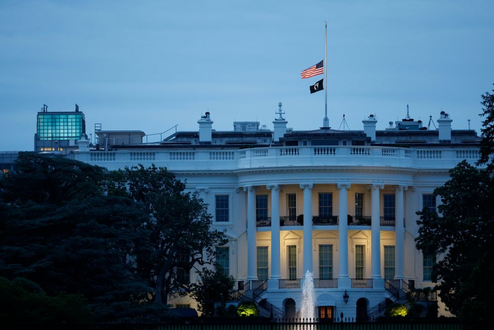 5月24日,在美国首都华盛顿,白宫降半旗向得克萨斯州尤瓦尔迪市枪击事件遇害者致哀。(新华社发,沈霆摄)