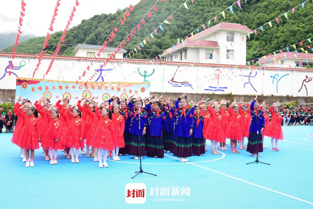 6月1日上午,在大凉山深处的普格县大槽乡中心校上空,飘荡着妞妞们唱出的《勇敢的妞妞》,歌声穿透迎风飘扬的五星红旗,向上,弥散在蓝天、白云、绿水、青山、人群。