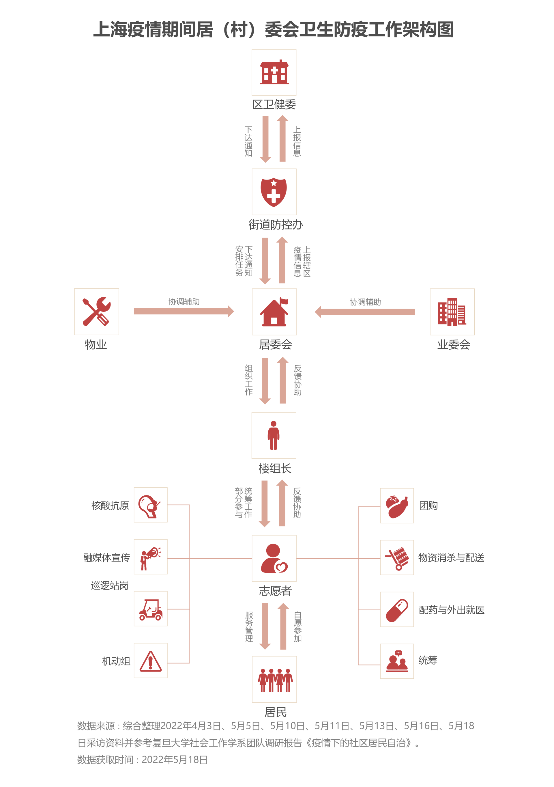 如果分析更进一步,面对静态管理这样并无先例的情况,权责不对等问题也给居委工作造成了一定程度的困扰。疫情凸显了居委会作为基层群众性自治组织“上情下达、下情上传”的纽带价值,但现实中,这一角色定位下的居委,并未被赋予足够的具体事务决策权。