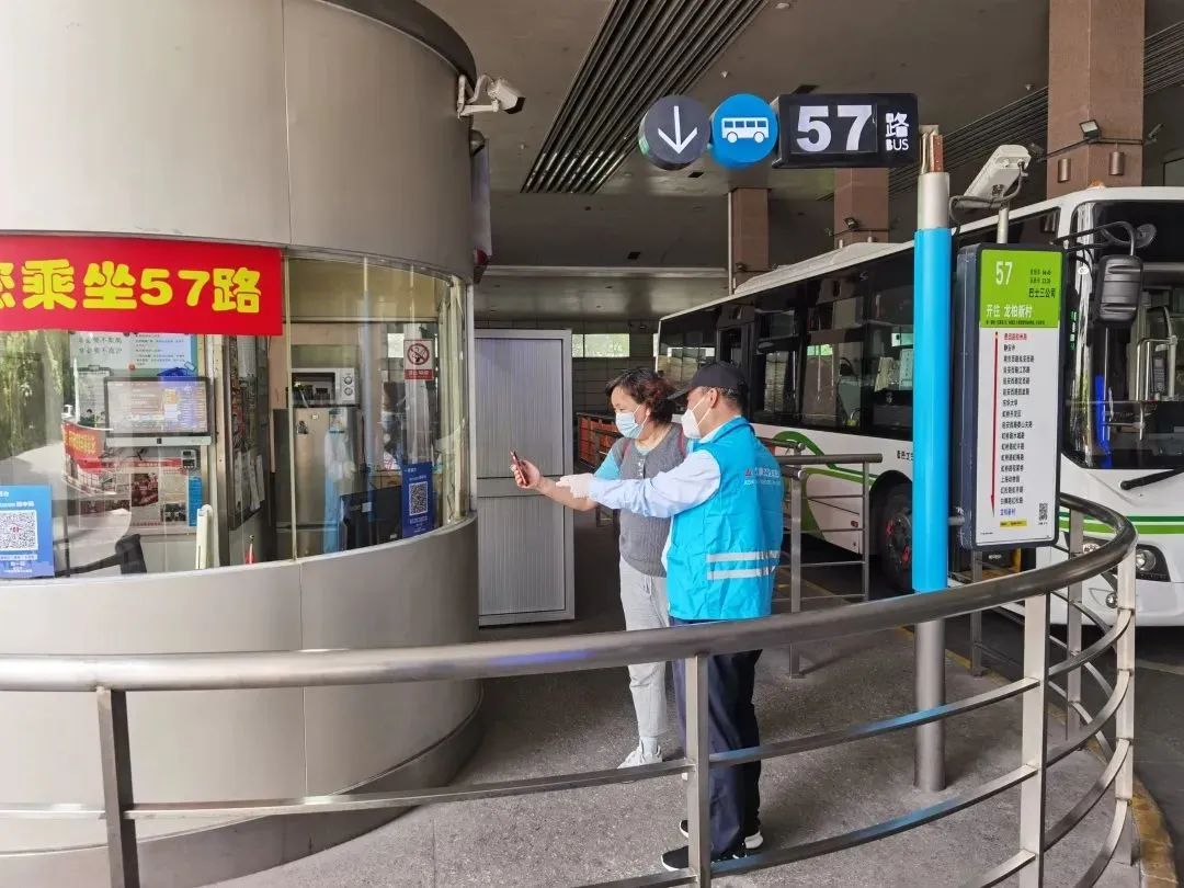在崇明区,南门中心医院、堡镇老车站等重要站点,客流量往往比较大。对此,崇明巴士的志愿者们,将信息核验的工作做在了前面。在乘客上车前,就对乘坐不同线路的乘客进行分流,并在站台对乘客的核酸检测信息进行核验,既提高运营效率,也提高乘客乘车的安全性。