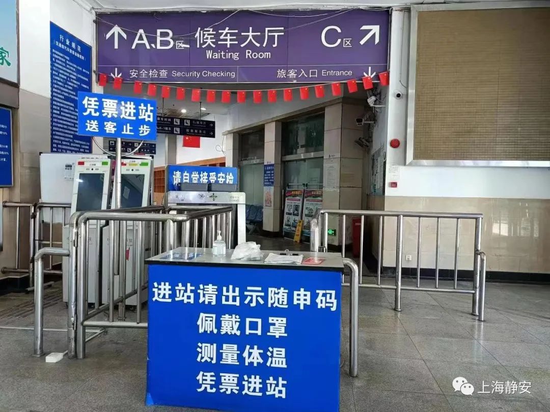 进站通道处,“请出示随申码、佩戴口罩、测量体温、凭票进站”的出行提醒十分醒目。车站方面表示,疫情防控期间,乘客进站需主动扫验“场所码”,出示72小时内核酸阴性证明,并全程佩戴口罩,配合工作人员测量体温及信息登记。