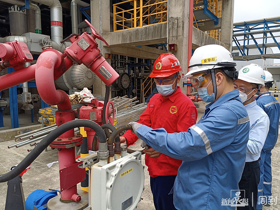 期间,检查组来到上海赛科石油化工有限责任公司,在某装置泡沫消防泵站检查中,发现存在部分消防重点部位未设置标识标牌、照明灯损坏、阀门标牌缺失等消防安全隐患问题,检查组当场逐一反馈问题,责令立即整改,举一反三,从严落实消防安全主体责任。