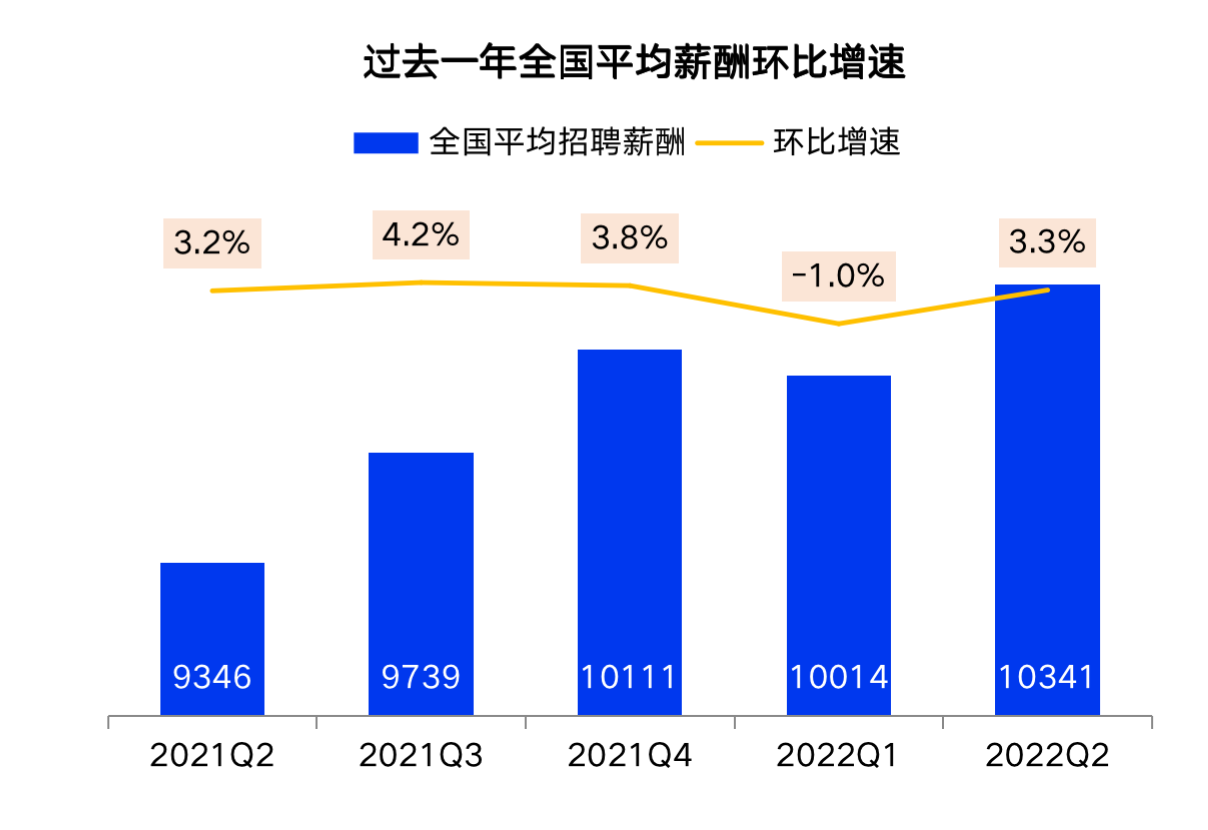 东方网7月19日消息:受疫情散发影响,二季度企业经营受到明显需求,招聘需求随之收缩,但平均招聘薪酬不降反升。智联招聘近日发布2022年第二季度《中国企业招聘薪酬报告》(以下简称报告),数据显示,二季度全国平均招聘薪酬10341元/月,环比上涨3.3%。在数据监测的城市中,上海以14775元/月的平均薪酬跃居首位,较上季度增长11.6%,增幅领先。