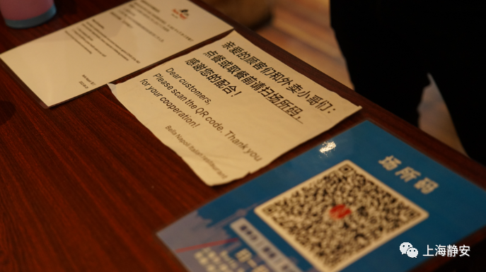记者注意到,除了门口张贴的“场所码”外,店长还特地把“场所码”放大并张贴在室内前台的显眼位置,并张贴中英双语提示。“可以第一时间提醒客人,让其扫验‘场所码’,如果是72小时内的绿码就可以进来,如果是黄码、红码,我们也有充分的防疫预案知道要怎么做,这样顾客也会对用餐环境更加放心。”