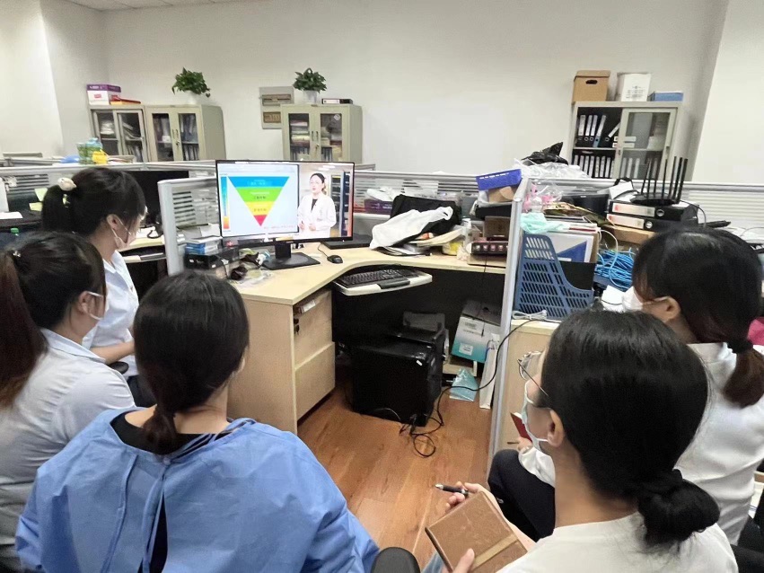 蒋良芝主任结合《新型冠状病毒肺炎防控方案(第九版)》应知应会和市、区疫情防控工作领导小组办公室相关精神,从底线思维、精准防控、有效通风、科学防护、清洁消毒、医疗废物、标准预防、额外预防等八个关键词出发,为观众们带来一堂别开生面的疫情防控专项培训。“新冠疫情防控千万条,规范佩戴口罩第一条”“错误的防护行为就是针尖大的窟窿漏过斗大的风”“防疫不科学、受罪加风险”,蒋老师以通俗易懂的语言、生动形象的案例、细致规范的演示,讲解日常防护中容易忽略导致疫情传播的小细节。课程有理论有实践,既讲解了新冠病毒从野生毒株变异至今的传播特点,也分解教学如何正确进行手消和佩戴口罩;有经验有教训,通过正反事例告诉大家忽略的防护细节正是新冠疫情传播的最大“隐形刺客”;有面上知识有重点辅导,为大家讲解在常态化疫情防控的当下,如何科学有效做好个人防护措施,不让病毒有隙可乘。