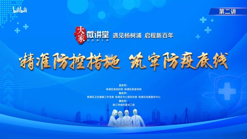 应广大群众的需求,此次课程将上传至哔哩哔哩视频网“大家微讲堂”账号(名称为:杨浦大家微讲堂),供大家随时随地学习观看,引导广大群众科学做好个人防护,共同筑牢防疫底线。