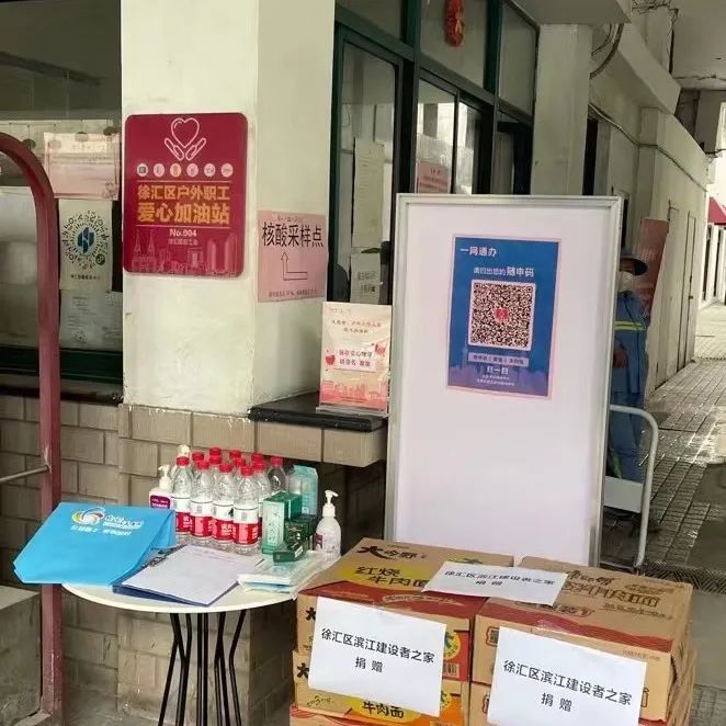 欢迎广大户外工作者,常来徐家汇爱心加油站,歇歇脚、避避雨、充充电、喝喝水!
