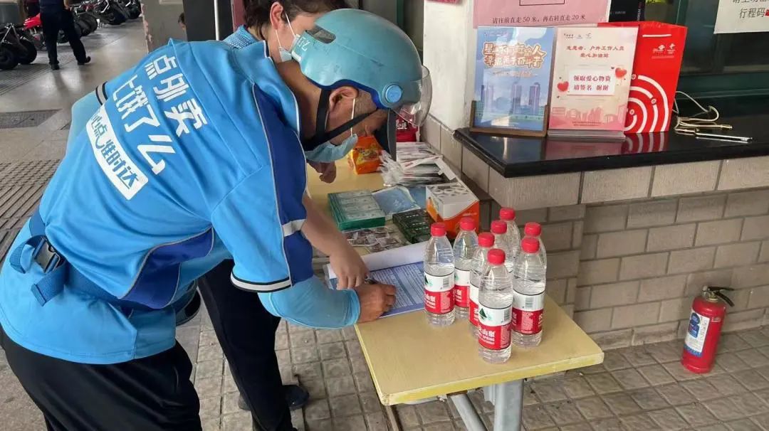 为徐家汇商圈及周边的外卖小哥、快递员、建筑工人、环卫工人、交警等送清凉,送补给、送爱心。