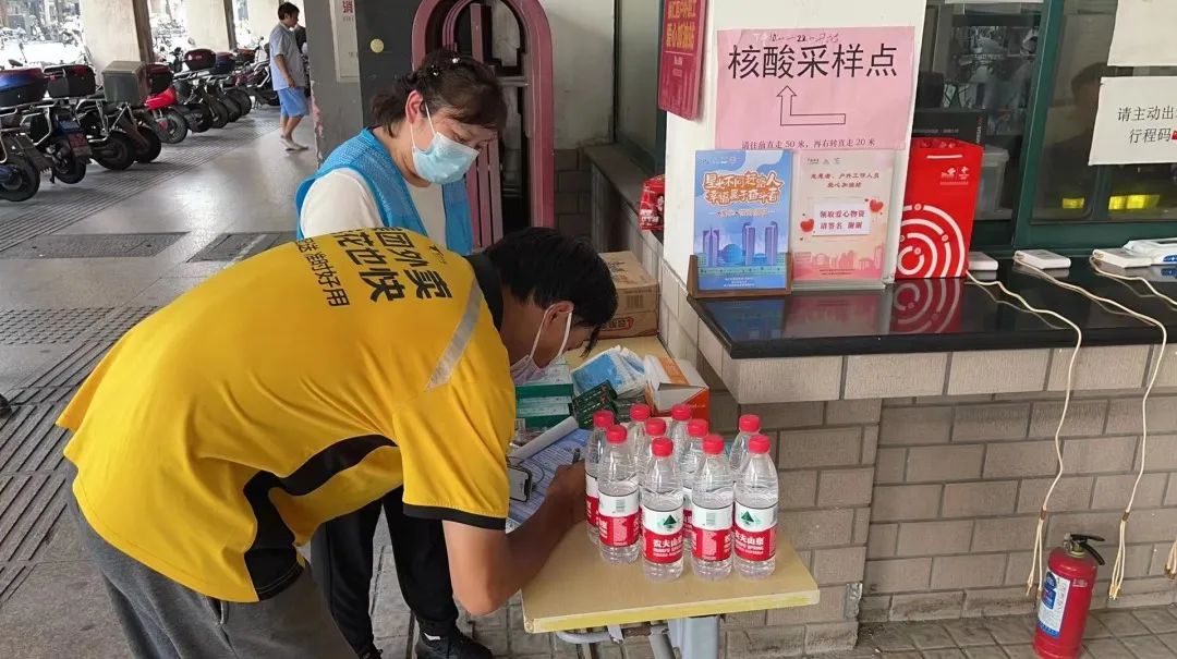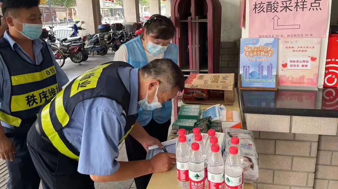 在物资准备上,除常见的防暑降温用品外,专门放置了消毒液、免洗洗手液、口罩等防疫物资,有效防止快递、外卖小哥等户外工作者的口罩在高温下很容易湿掉而导致防护功能下降,可以马上换新使用,加强防护。
