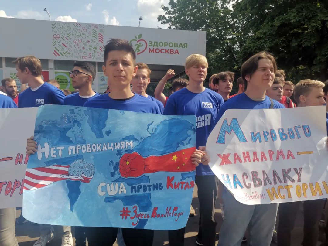 近400名俄罗斯青年集会力挺中国 :美国,把手从台湾拿开