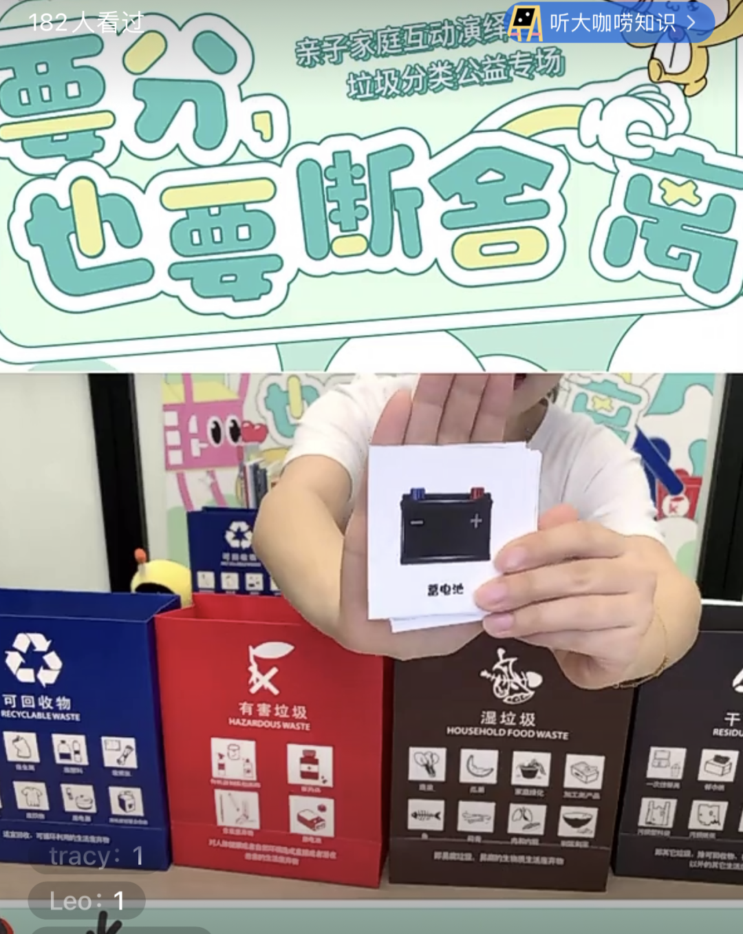 8月5日晚,由杨浦区绿化和市容管理局、杨浦区妇女联合会共同主办的亲子家庭互动演绎之垃圾分类线上公益专场活动,在线上直播间拉开序幕。