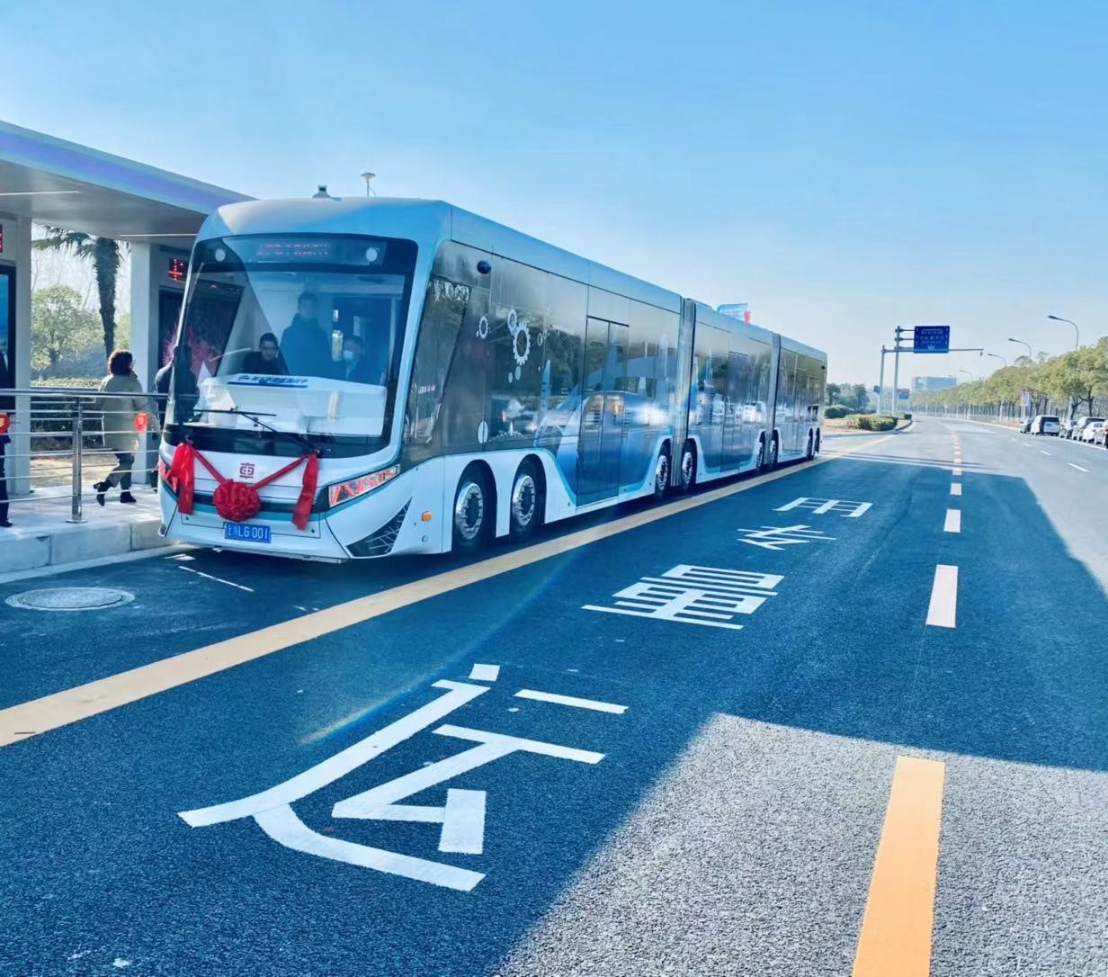 近日,临港泥城社区的马路上,这些天多了青绿色公交车的身影。车身上的“HO”字样显示了它的与众不同:这是新片区首条氢能源公交——临港7路,上路运行已有两个多月。氢能源公交车运行的核心电堆是目前全球最大功率的燃料电池电堆。