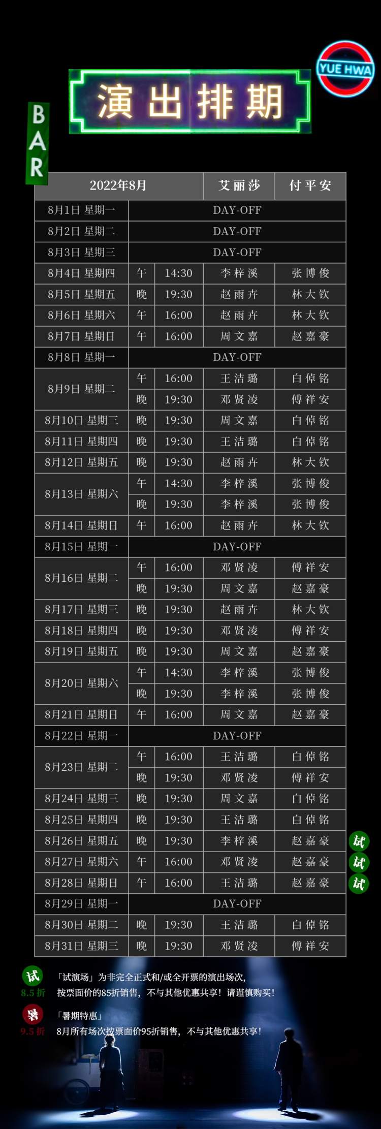 无论是大排档的食客,还是花店的顾客,《致爱》都给予了观众一种极强的融入感,观众与角色共享着情绪的起伏,与角色一起思考成长的意义与代价。目前,该剧8月演出排期已经出炉,火热的夏日,去剧场感受一场小而美的音乐剧吧!
