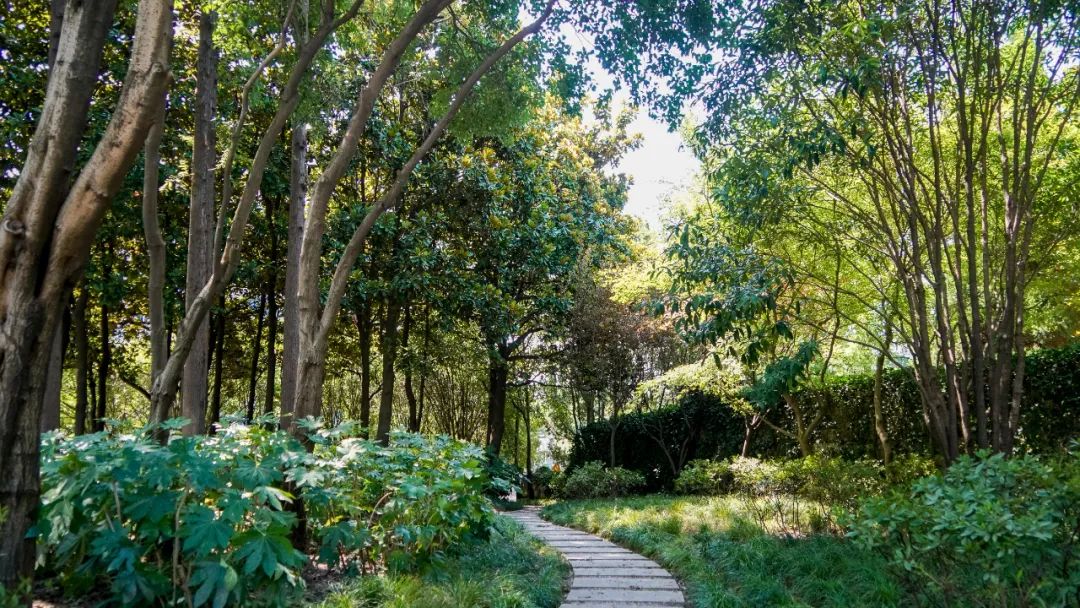 此外,原本高低不平的鹅卵石路面也已更换为陶瓷透水砖,红白相间的小径点缀在大片绿意之间。徐军介绍,海绵城市是发展趋势,公园将通过雨水花园、旱溪花境等海绵技术措施,消纳净化雨水,实现公园的“水弹性”。