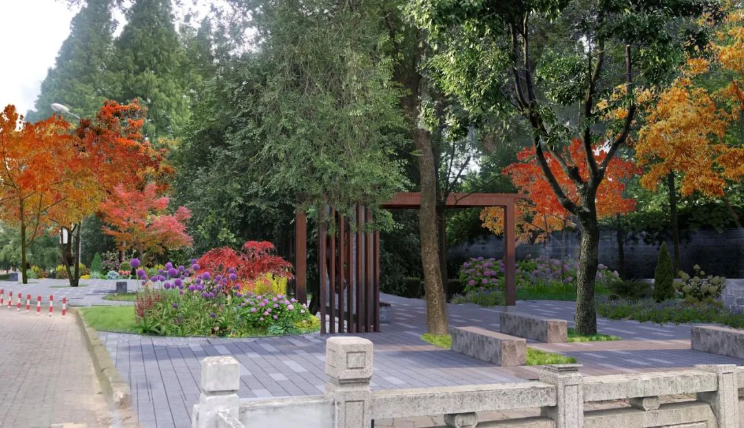 既然是口袋公园,不仅硬件设施要到位,高颜值的绿化景观也不能少。在公园左侧的林木空间,施工人员正忙于清理、翻耕土地等收尾工作。“我们重新梳理现场植物,通过修剪、移植等手段把空间打造得更有层次感。”现场负责人王玬表示,为契合“栖霞苑”“霜天红叶”的主题,公园还将引入乌桕、无患子、红花槭等秋色叶树种。“目前气温较高不适宜植物生长,我们先准备好土壤环境,待天气适宜再种植。”王玬说。