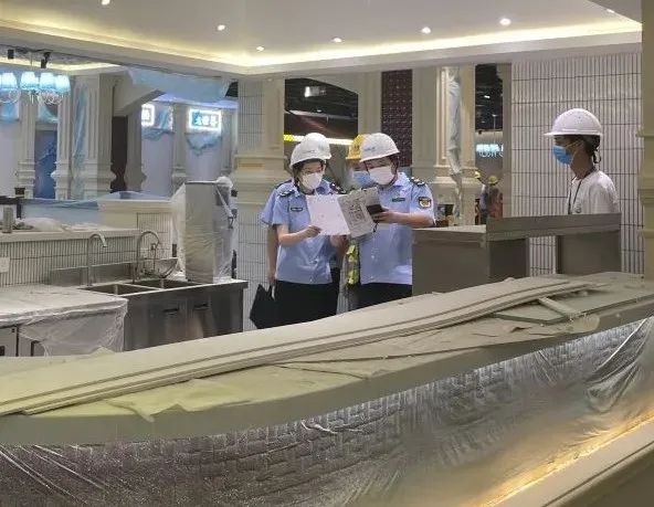 这群身着“蓝制服”的工作人员来自区市场监管局悦“Young”工作室,此次专门为企业提供“一站式”服务。服务内容涵盖为入驻商场企业提供营业执照、许可证办理咨询、审图等,并开展现场核查,及时解答企业在实际装修中遇到的困难和诉求。当天,共为十余家企业提供了办证办照指导服务。