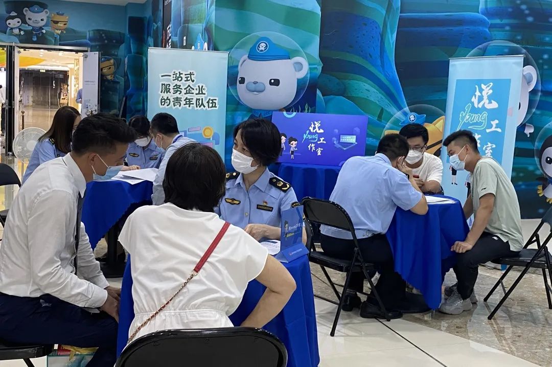 8月11日下午,数十位身着“蓝制服”的年轻人来到五角场万达广场C栋一楼,在现场摆好桌椅支起“摊位”。不一会儿,陆续有人过来询问。他们在干什么呢?一起来看看。
