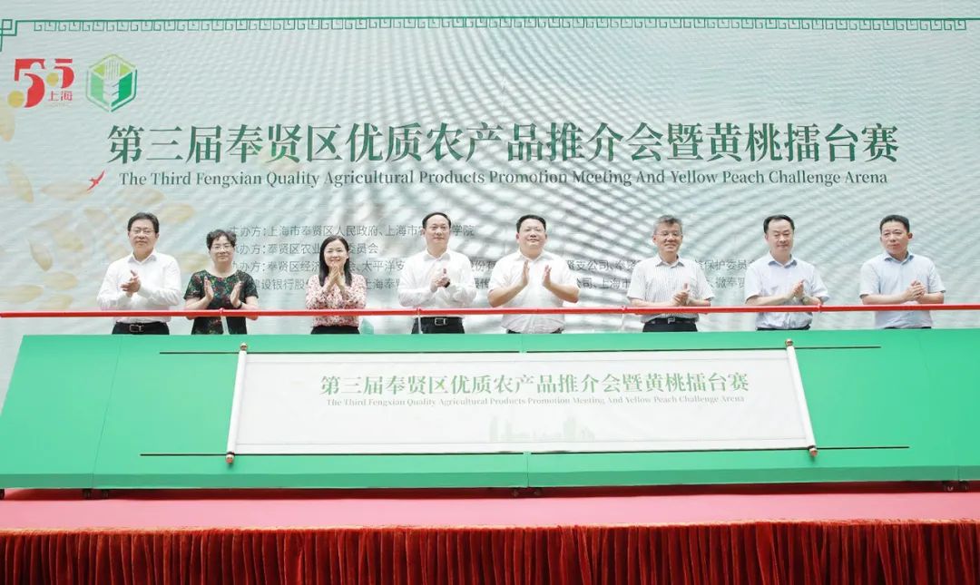 2022年8月12日下午,由奉贤区人民政府、上海市农业科学院主办,奉贤区农业农村委员会承办,奉贤区经济委员会、太平洋安信保险奉贤支公司、中国建设银行股份有限公司上海奉贤支行、上海上报传悦置业发展有限公司、奉贤区黄桃业协会、微奉贤协办的第三届奉贤优质农产品推介会,在奉贤区上报传悦坊中庭广场隆重开幕!