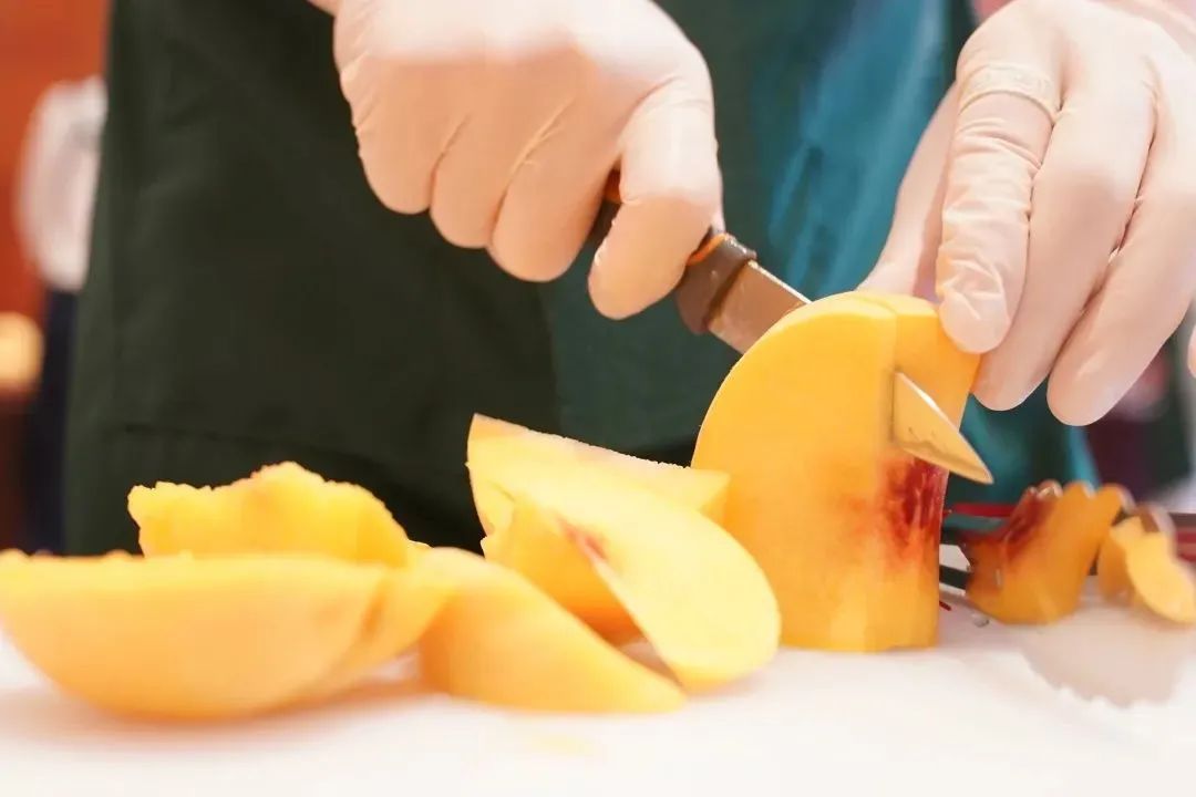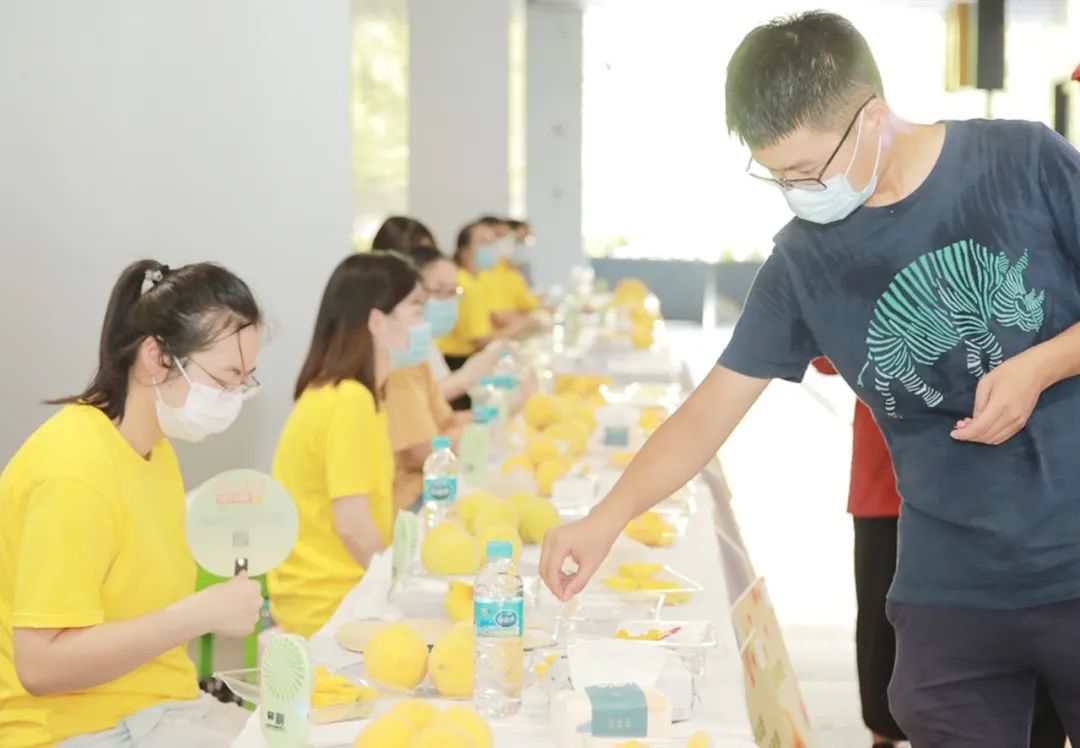 现场的朋友们可免费品尝参加擂台赛的黄桃,为你喜爱的黄桃打call~