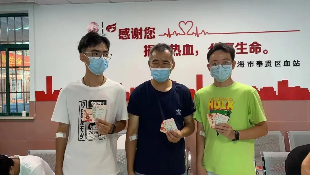 团队中还有一个“全家总动员”的三人组合,毕玉鹏是韵康健身团队的一员,与团队一起参加了多次无偿献血。儿子毕正宇和侄子方志强将老毕持之以恒的奉献看在眼里,感动的同时,加入无偿献血的念头也不断滋长。这一次,他们也决定加入进来。于是,现场就出现了“拖家带口”献血的感人一幕。“想到自己捐献的血可以在关键时刻输给急需的人,我更深刻地感受到了爸爸做这件事的意义。只要身体条件允许,我以后还会跟着一起来参加无偿献血。”毕正宇说。