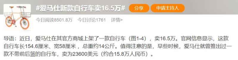 近日,著名的奢侈品品牌爱马仕就上架了一款自行车,而这款自行车的售价也引起了网友热议。