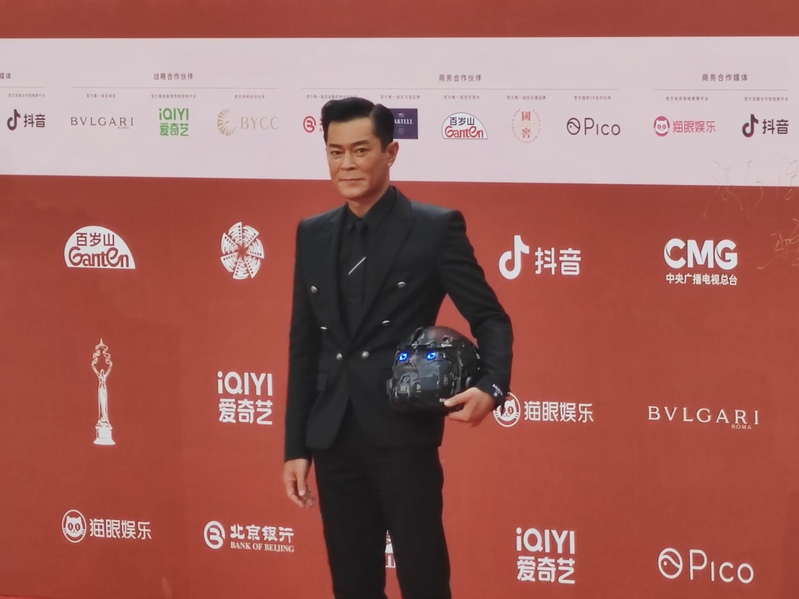 昨天下午,第十二届北京国际电影节红毯仪式在雁栖湖国际会展中心举行,《明日战记》总监制、主演古天乐携影片中1:1的机甲头盔登场,并现场为观众展示头盔的炫酷科技。