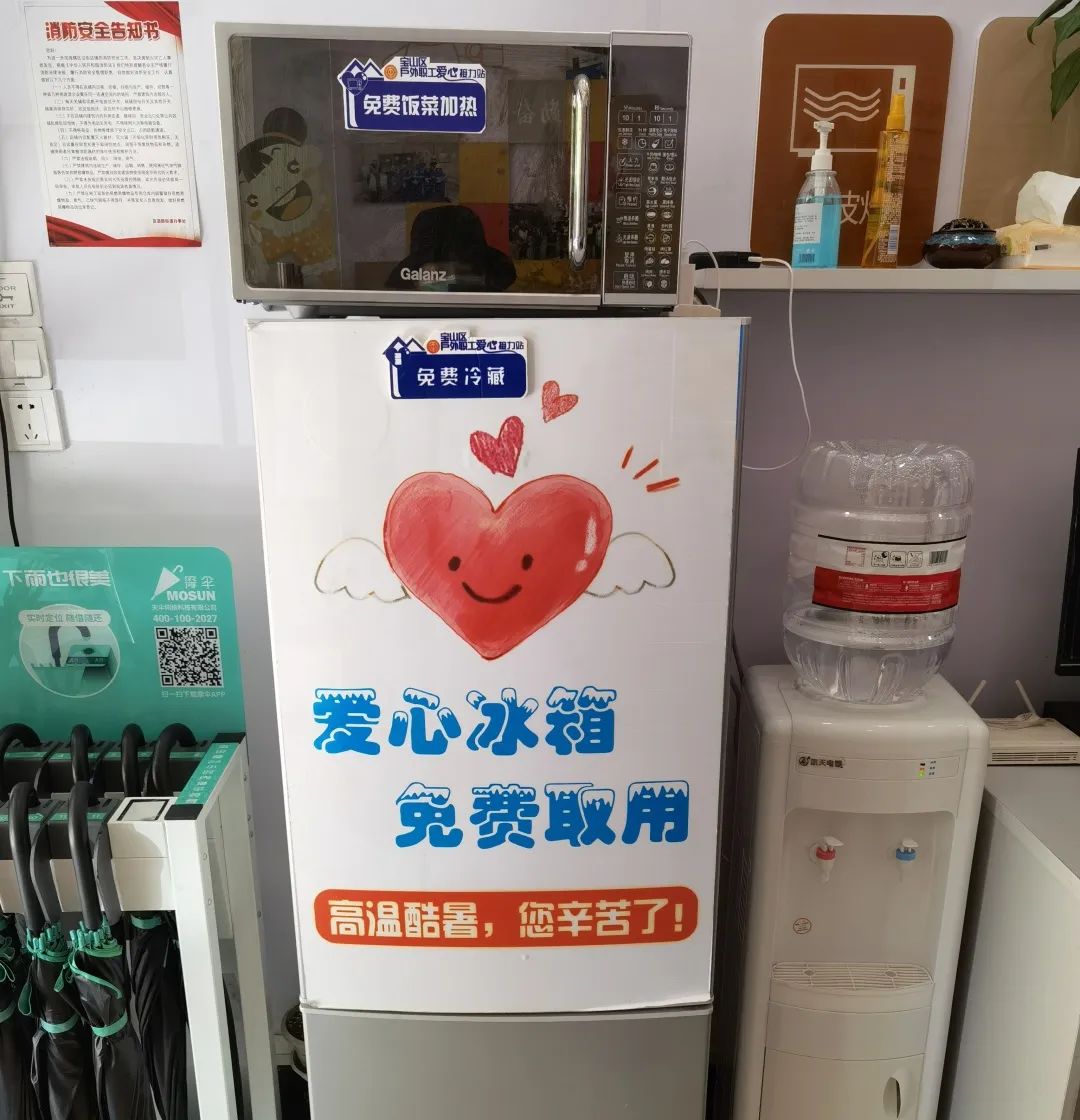 近日,申城连续高温,宝山区友谊路街道辖内“爱心接力站”全部开放,提供便民服务,为环卫工、快递员、送餐员、出租车司机等户外职工休憩。