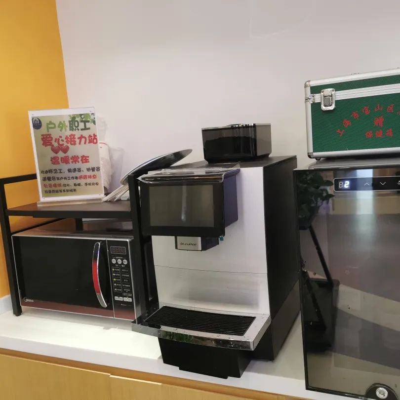 新装修的永清路899号党群服务中心“爱心接力站”,环境整洁,设施齐全,多种资源融合,更是为户外职工提供了家门口的便利。