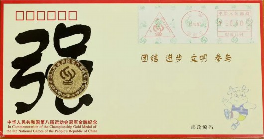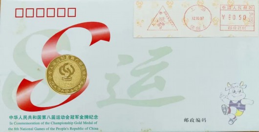 1997年第八届全运会金牌邮资标签镶嵌首日封