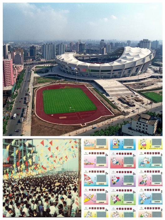 1997年上海体育场全景、八运会体育彩票现场、八运会限量彩票