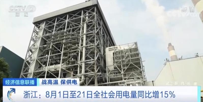 立秋后,浙江每天的最高气温依然都在38摄氏度以上,加上经济持续企稳回升势头明显,用电量快速增长。从8月1日到21日,浙江全社会用电量同比增长高达15%.