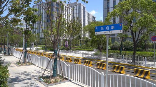 据了解,天启路道路新建工程南起丰华路,北至鹤旋东路,全长588.35米,规划红线宽20米,采用双向机非混合车道设计,两侧设有人行道。