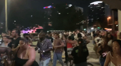 7月16日,内华达州拉斯维加斯大道(Las Vegas Strip)上的一家酒店玻璃门被人砸碎,巨大的声响被民众误认为是枪声,导致民众纷纷惊恐逃跑。期间,即便警察告诉民众这是虚惊一场,但许多人仍跑过人行天桥,寻找躲避地点。
