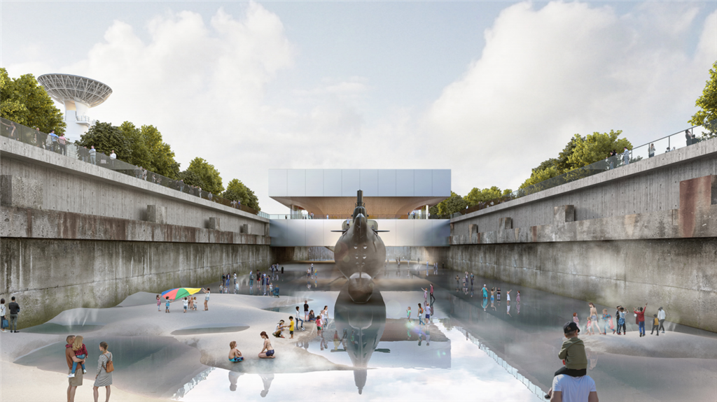 该项目选址黄浦滨江原江南造船厂3号船坞,总用地面积约12600平方米。该项目于2021年4月启动,设计方案突出文化与展示功能,通过潜艇与江岸的有机结合,打造简洁的建筑外形、合理的空间尺度。坞底的水景设计呈现了逐渐起伏的地形和水位高低变化,还原船坞历史风貌。地面通往坞底的大台阶将船坞与滨江公共空间串联起来,实现了活动空间的延伸。