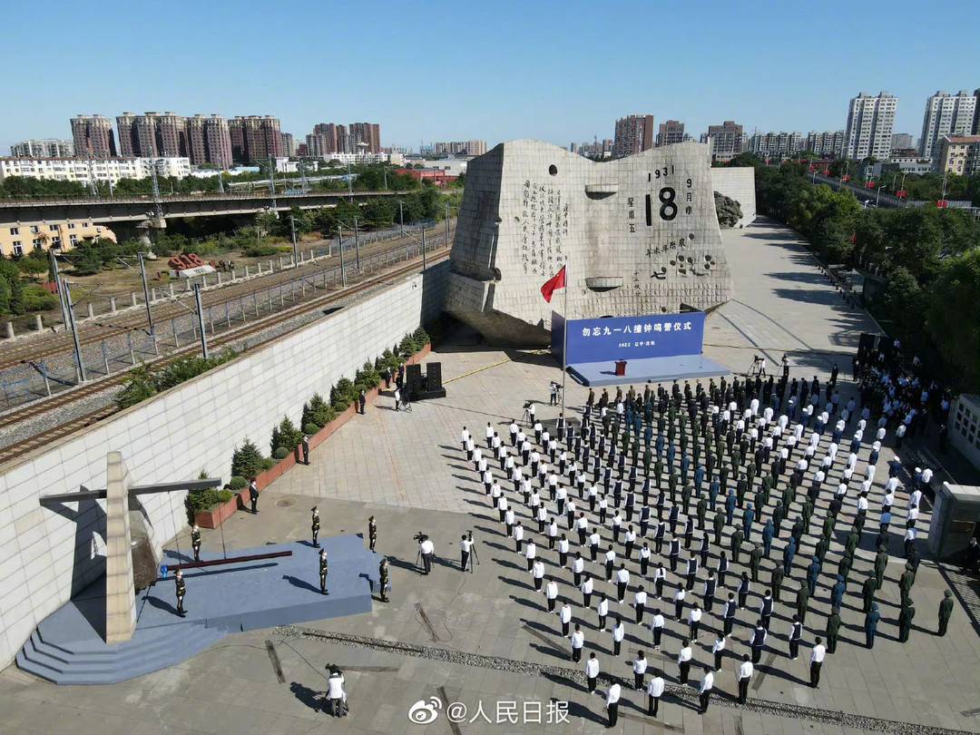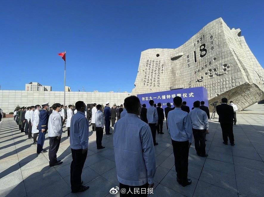 9月18日上午,勿忘九一八撞钟鸣警仪式在沈阳“九一八”历史博物馆残历碑前广场举行。9时18分,参加仪式的各界代表共同撞响“警世钟”,14响钟声回荡在长空。随后,沈阳全城上空拉响防空警报。今日中国再不是1931年的中国,勿忘国耻,警钟长鸣!
