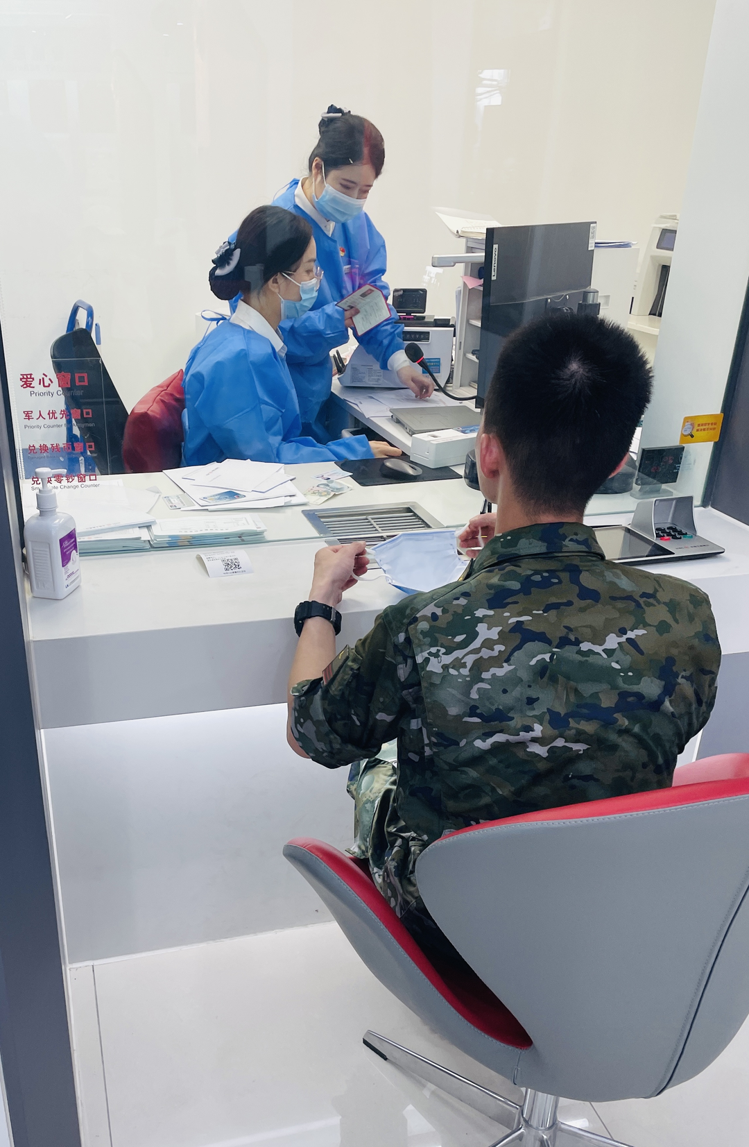 近阶段,退役军人事务部正式开始着手印发退役军人优待证;退役军人由此成为近期重点服务人群。网点在原有基础上,开辟退役优抚专属服务区,配置休息座椅、老花镜、充电器等设施,旨在让退役军人在享受金融服务的同时,也能感受到切实的便民利民。而作为“拥军优抚”特色站点,网点也主动承担起了为退役军人申请优待证的服务职责,为符合条件的退役军人等其他优抚对象申请发放。
