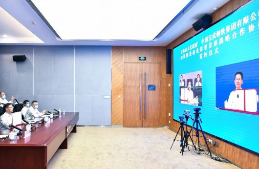 上海市人民政府22日以视频形式,分别与中国石油化工集团有限公司、中国宝武钢铁集团有限公司签署加快推进南北转型发展战略合作协议。上海市委副书记、市长龚正,中国石化集团董事长马永生,中国宝武集团董事长陈德荣见证签约并讲话。市委常委、常务副市长吴清分别与中国宝武集团总经理胡望明,中国石化集团副总经理喻宝才签约。