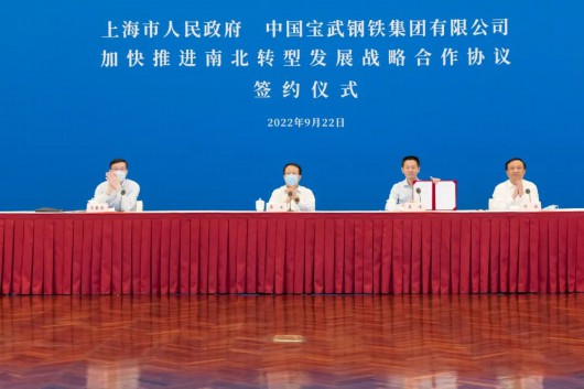 根据协议,上海市将与中国石化、中国宝武合力推动南北转型发展,促进实现优势互补、利益共享、发展共赢。