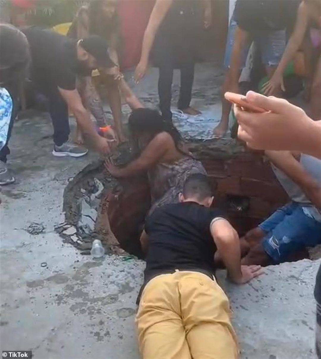 38岁的加布里埃拉·卡瓦略告诉巴西新闻媒体,她们感到祖母家的地面在震动,但在跳舞时并没有太在意。等真的掉进坑里才意识到事情的严重性。
