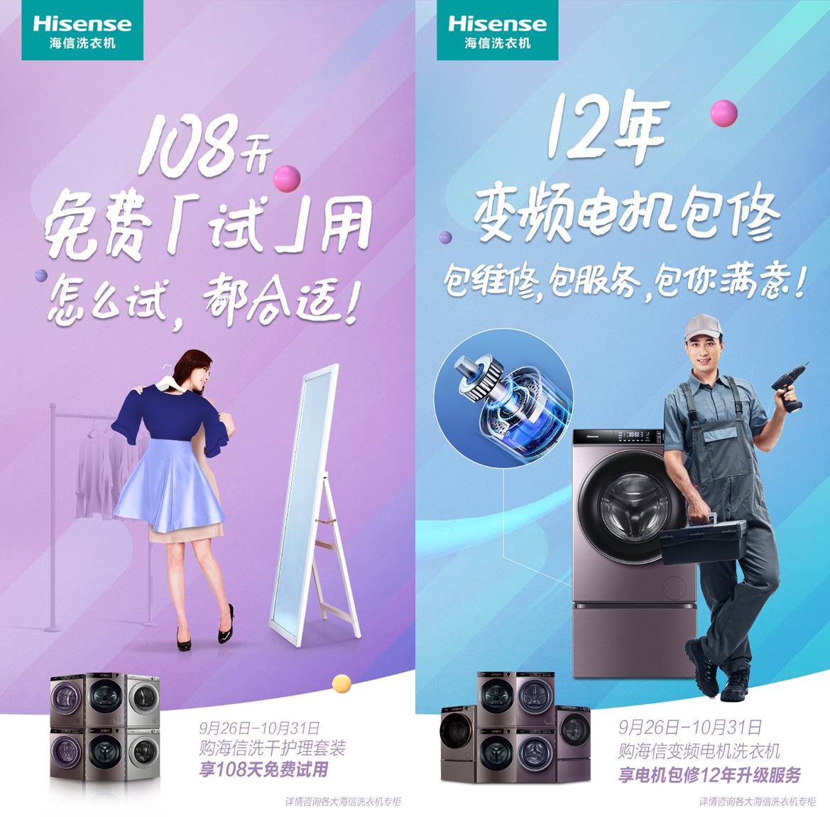 日前,海信洗衣机方面传来消息,9月26日-10月31日,在全国推行购海信变频电机洗衣机享“变频电机包修12年”以及购海信洗干护理套装享“108天免费试用”的福利政策,让消费者在国庆期间尽情享受家电为生活带来的品质服务。