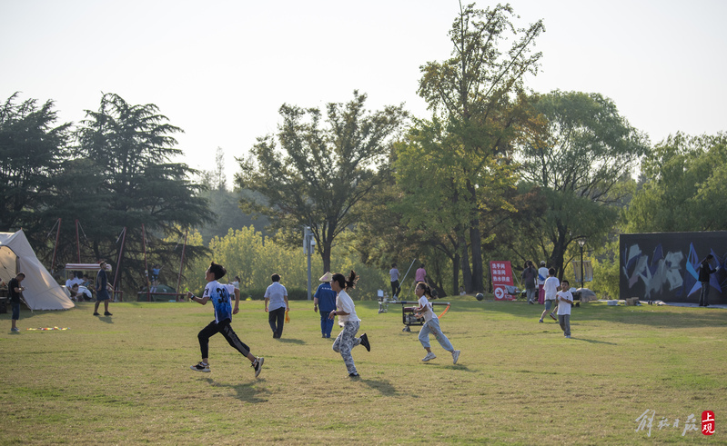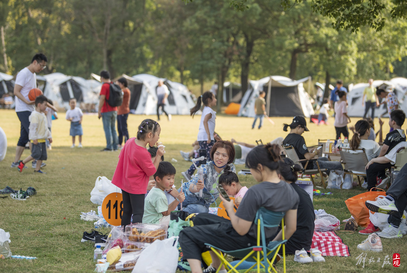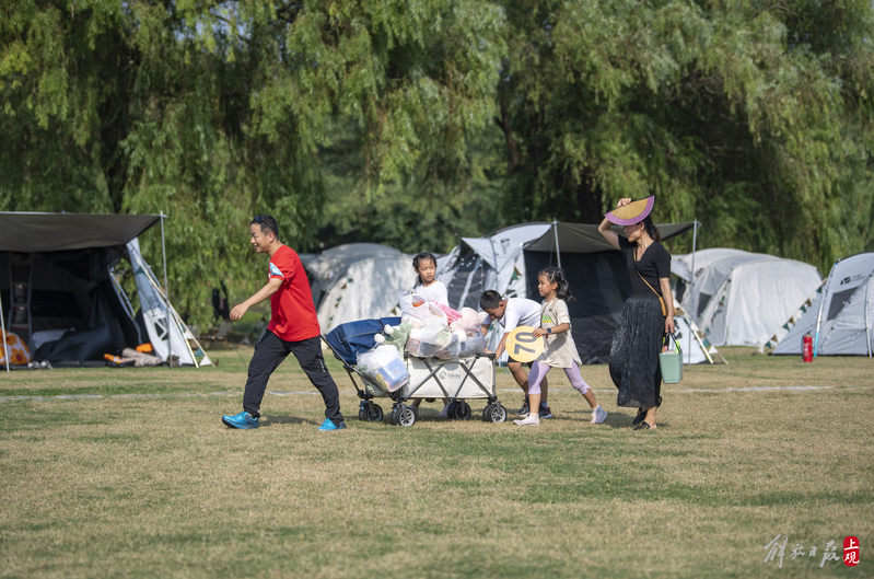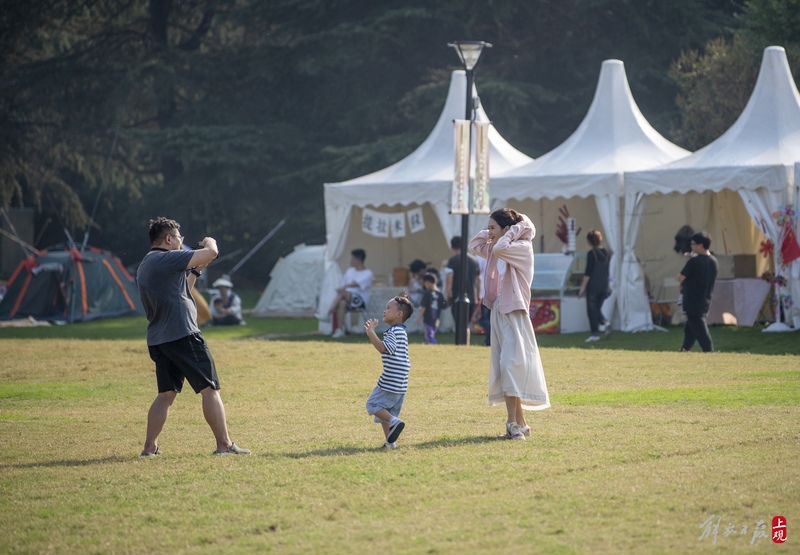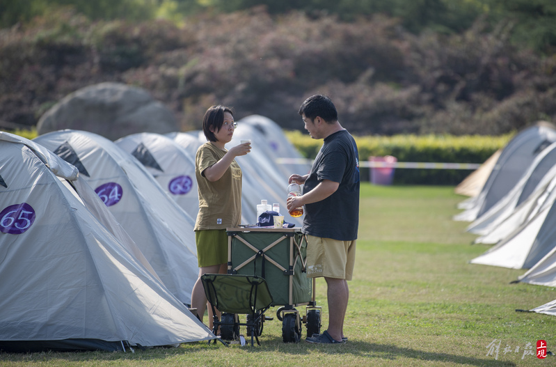 2022年10月2日,不少市民带着家人和朋友来到东方绿舟露营营地,一起露营、逗萌宠、学马术、玩飞盘、吃烧烤、喝啤酒、品咖啡、逛市集、看露天电影、听浪漫音乐会……