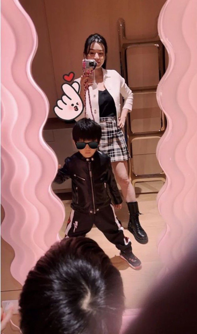 近日,陈妍希晒出了与儿子的同框照,妈妈陈妍希身穿短裙大秀美腿,儿子小星星则一身黑色衣裤,以尽脸上被P上了墨镜,仍遮掩不住帅气的脸,被网友赞称遗传了爹妈的好基因。