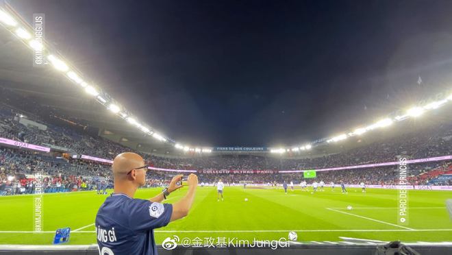 就在日前,金政基还曾现身巴黎圣日耳曼对阵尼斯的法甲主场比赛,为球队现场作画。他也在个人社交平台分享了这些照片。