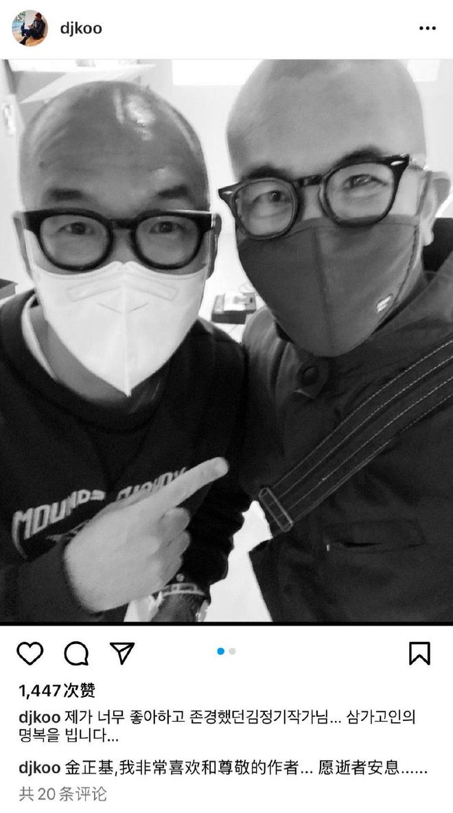 具俊晔晒黑白合照悼念漫画家金政基: 愿逝者安息