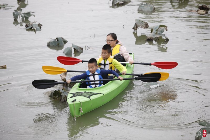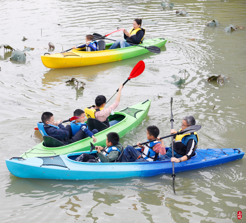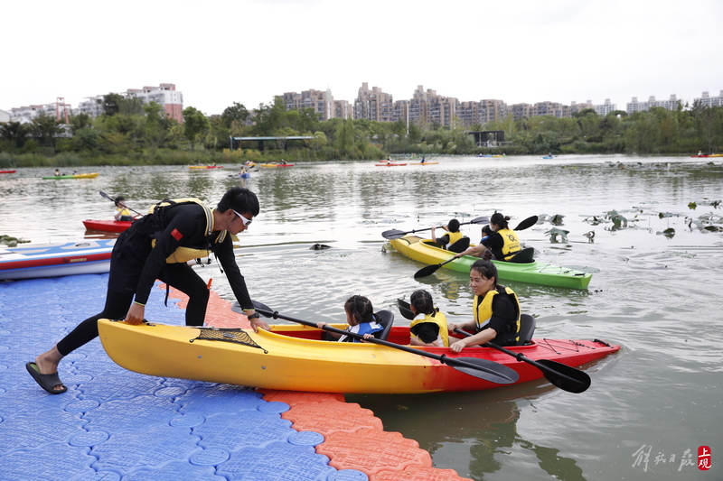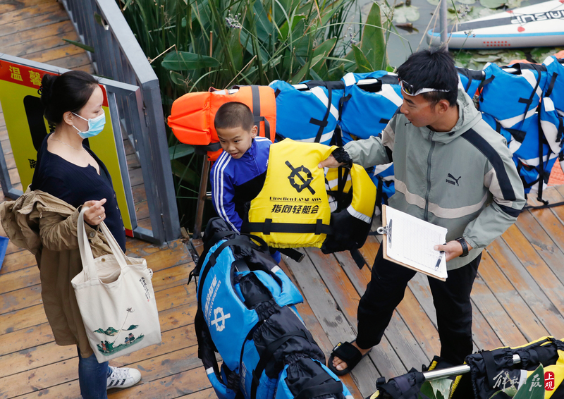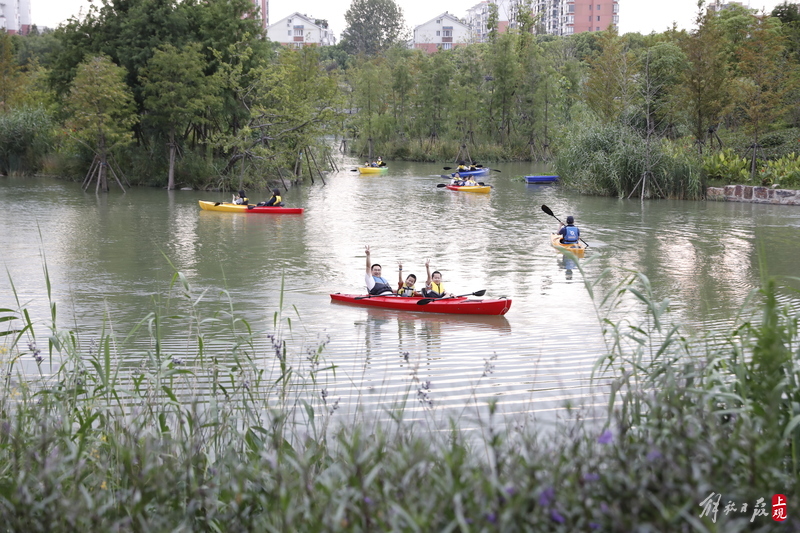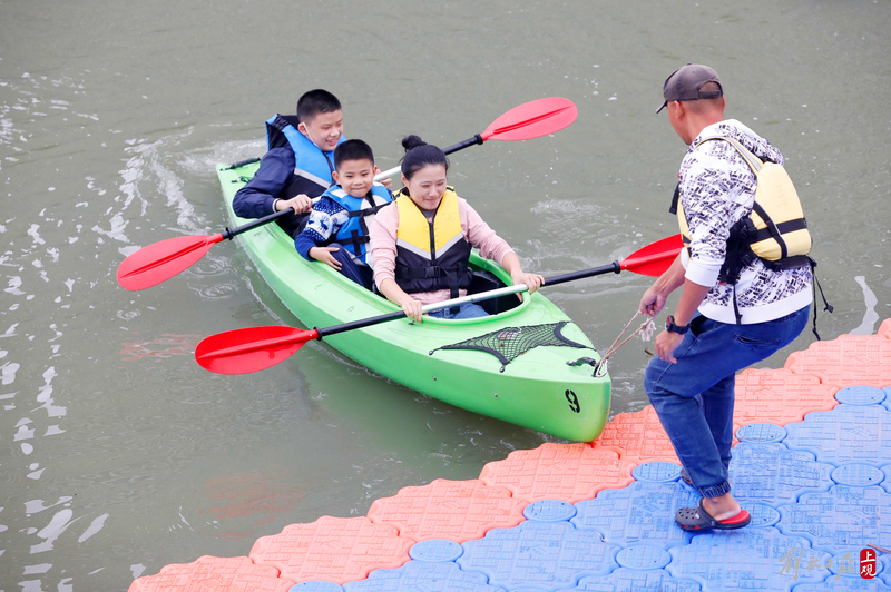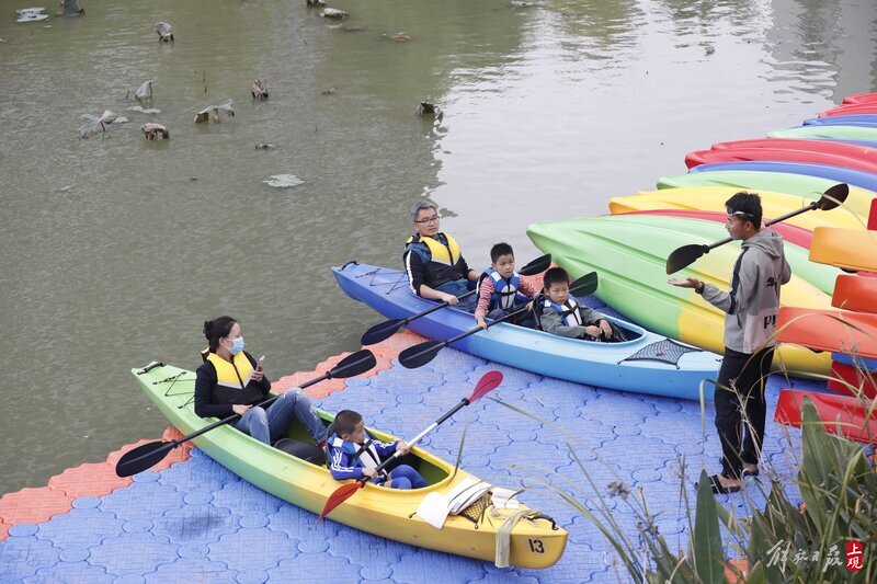 这个国庆黄金周,闵行区古美公园新开不久的水上运动项目迅速走红,平均每天有一百多组家庭前来体验皮划艇运动,多为就近居民前来开展亲子游活动。