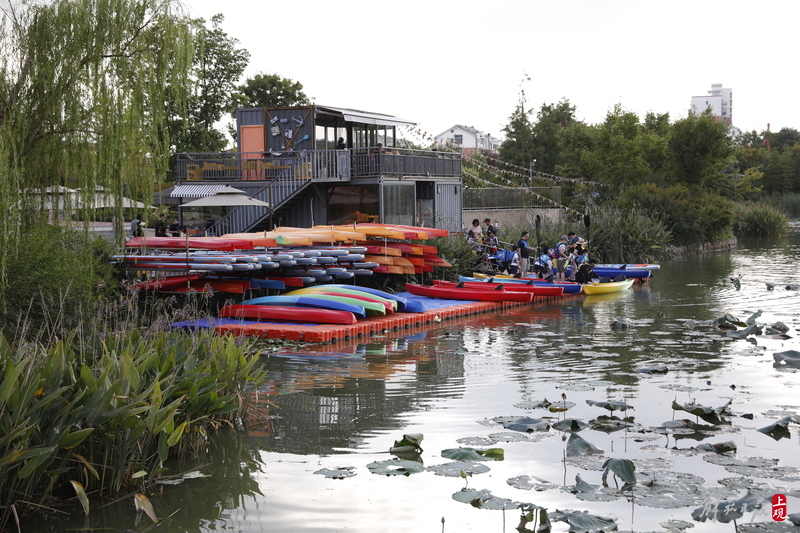 古美公园以水上运动和湿地景观为特色。每逢节假日,指向轻艇会面向大众给出优惠活动,让皮划艇和浆板等水上运动拥抱大众,成为市民喜爱的时髦体验。
