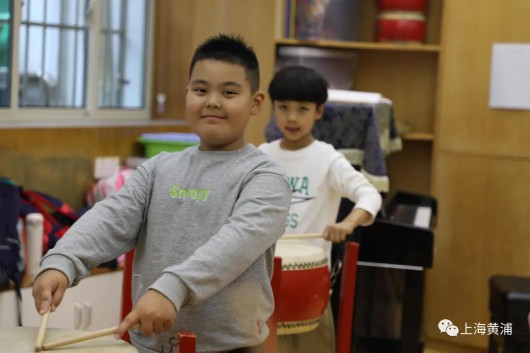“咚咚咚……”周四下午的四点三十分,地处豫园老城厢的回民小学校园里,传出声声铿锵的鼓声。循声而去,三(1)班的新疆维吾尔族男孩阿提拉正在打鼓,和着节拍挥动鼓槌,与班上其他12名同学一起练习乐曲《铿锵鼓乐》。作为学校430快乐社团“咚咚鼓韵”社团的成员,沉浸在中国鼓的学习中,阿提拉感到由衷的快乐。